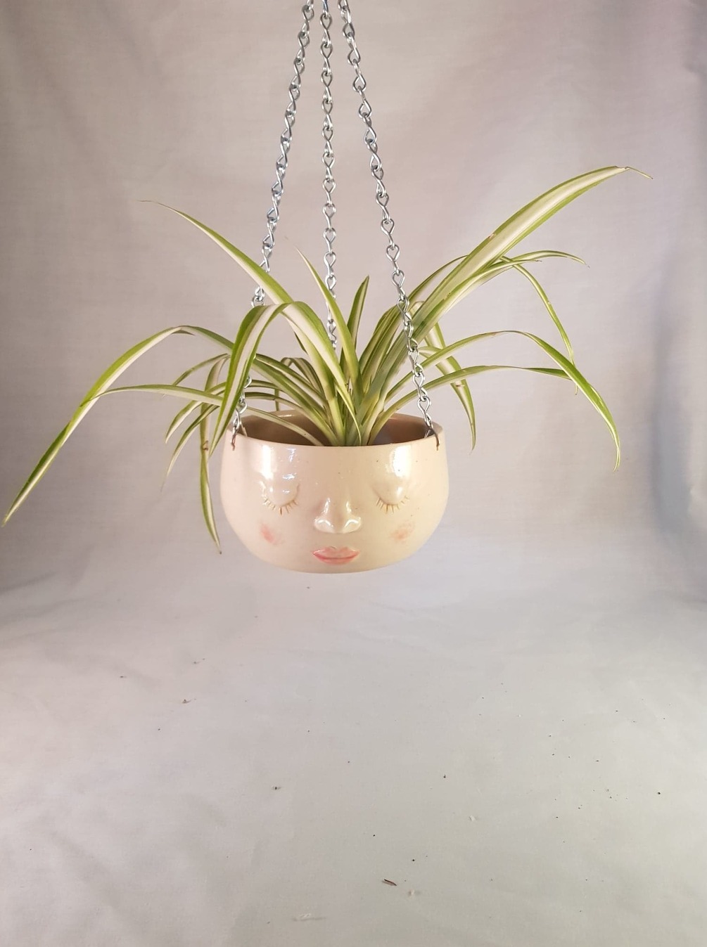 This planter was created on the wheel and altered to make a gorgeous sleepy face that will enhance your home and garden.