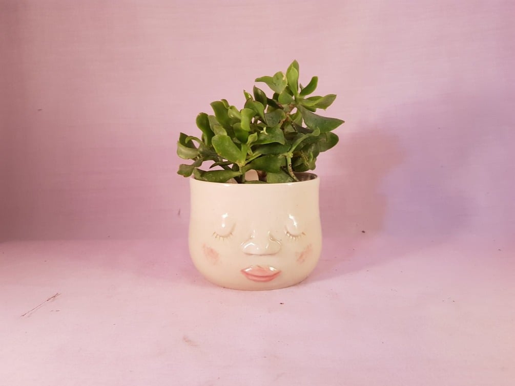Handmade Pot planter with sleepy face.